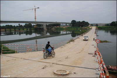 Já de regresso, a passagem pela ponte militar que ainda vai permitindo a passagem do trânsito, enquanto a nova ponte de betão, construída pela empresa portuguesa Teixeira Duarte, não entra em funcionamento.